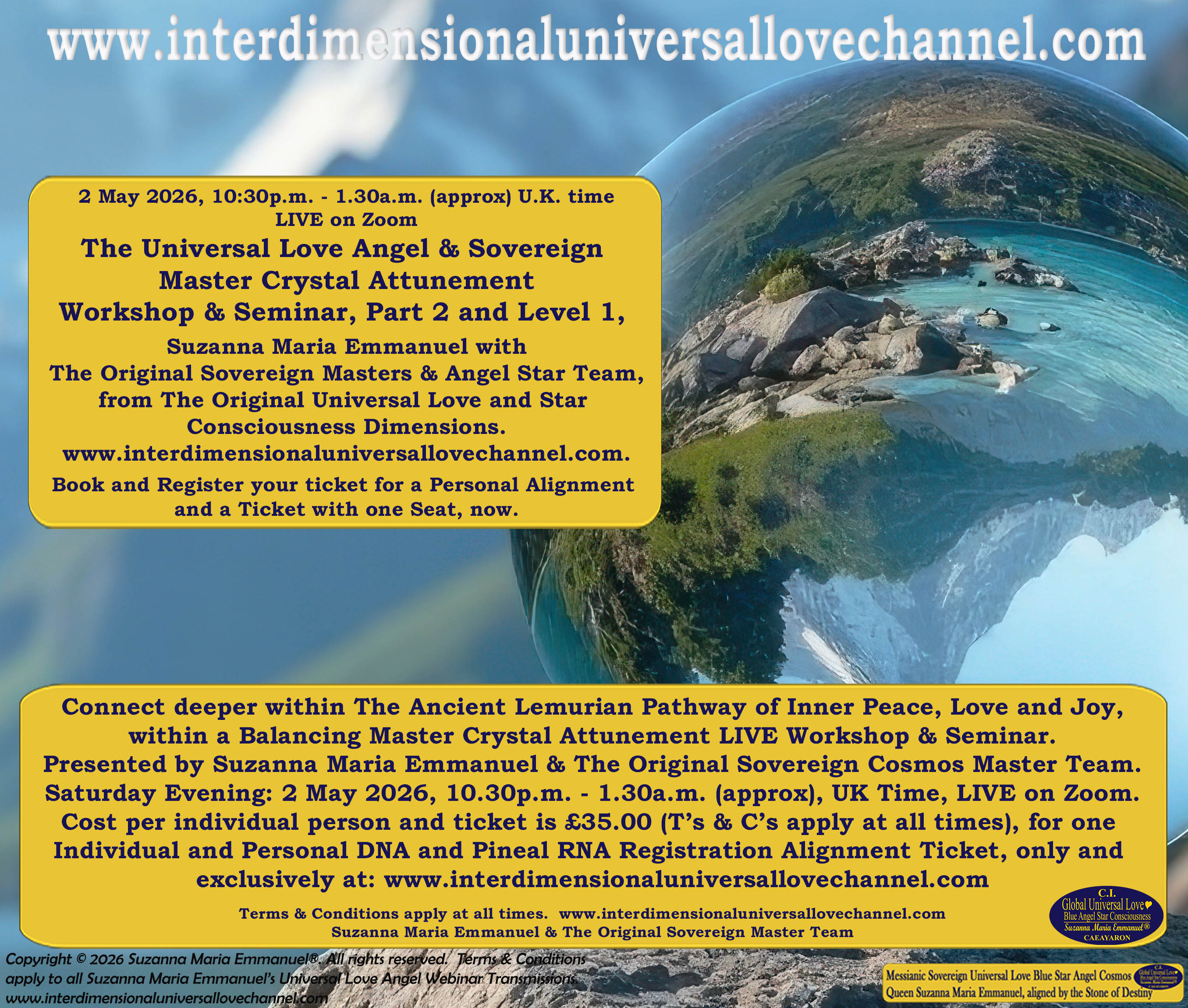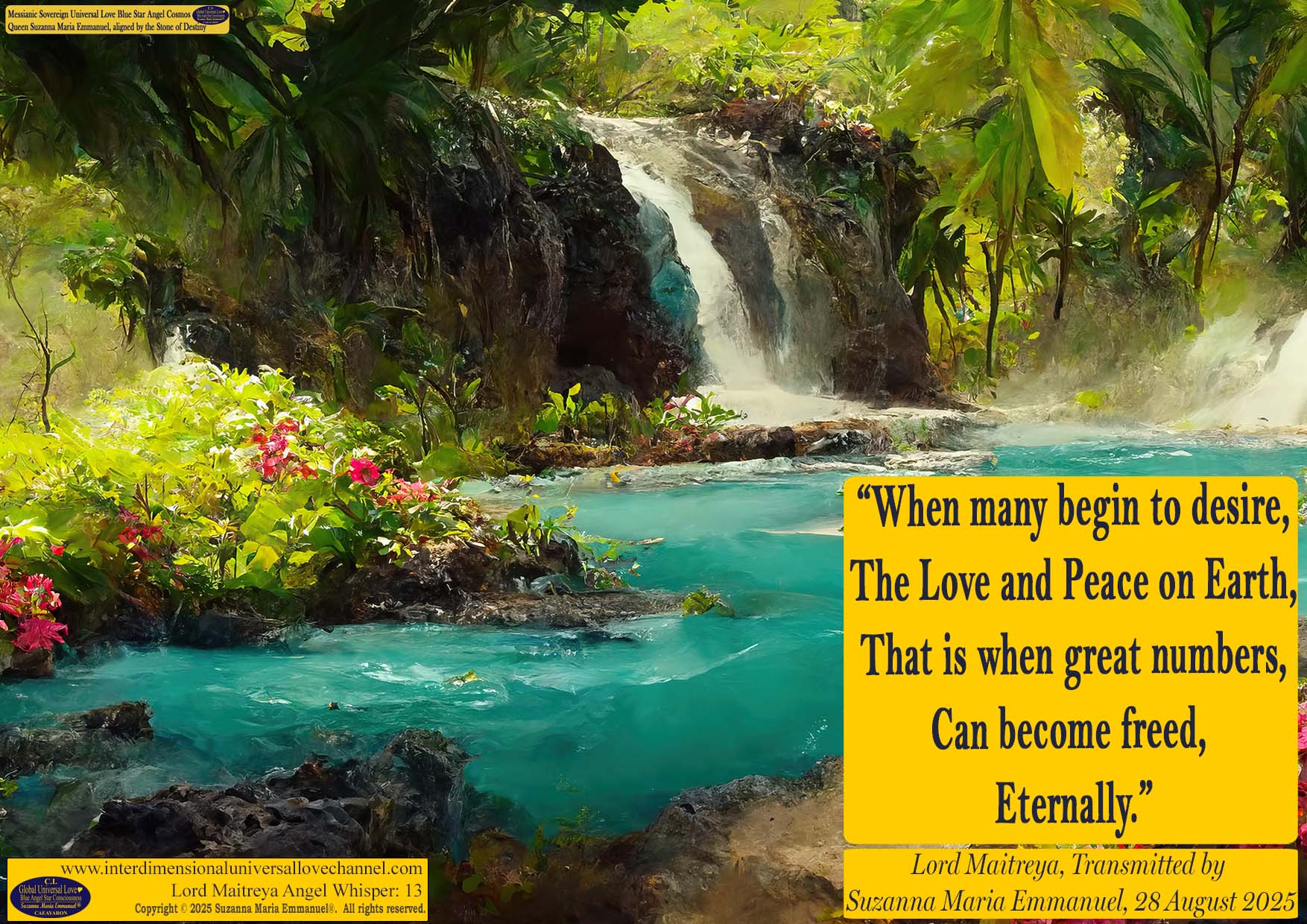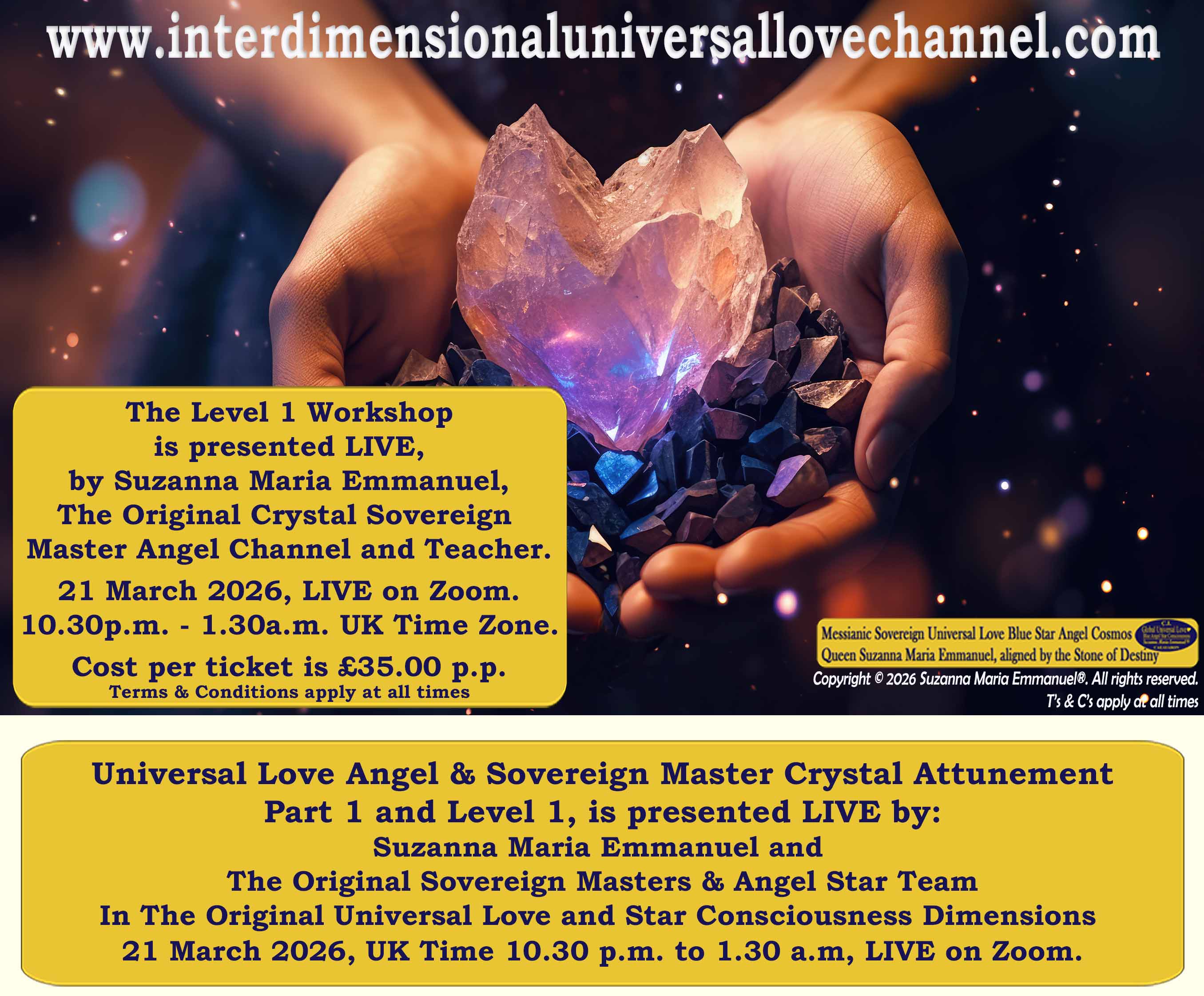 All Suzanna Maria Emmanuel's Interdimensional Star Intellect Transmissions of Universal Love Star Consciousness carries a professional and Legal Disclaimer & Indemnity, Trademark, and Copyright Protection.