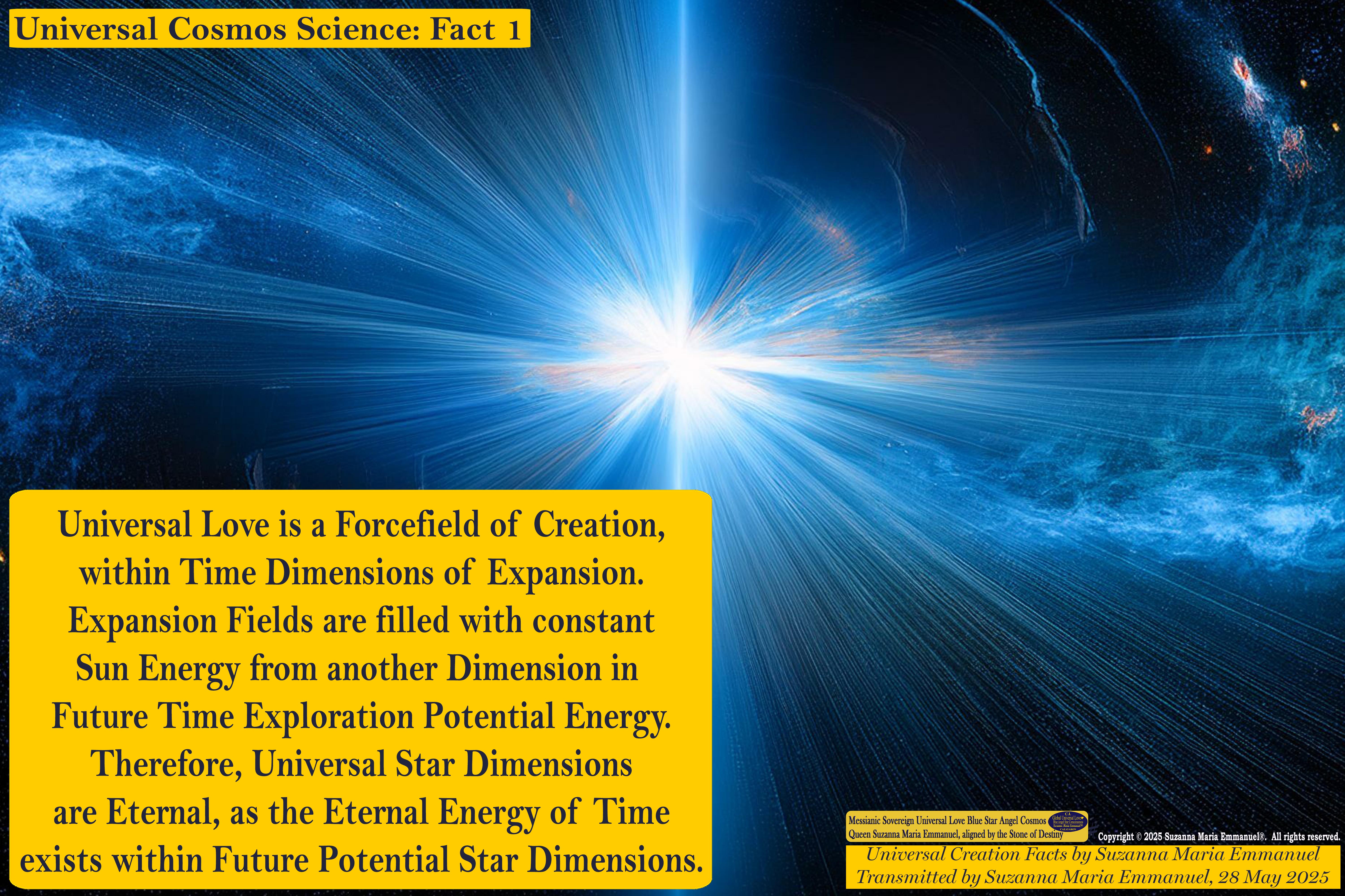 All Suzanna Maria Emmanuel's Interdimensional Star Intellect Transmissions of Universal Love Star Consciousness carry a professional Legal Disclaimer & Indemnity, Trademark, and Copyright Protection.