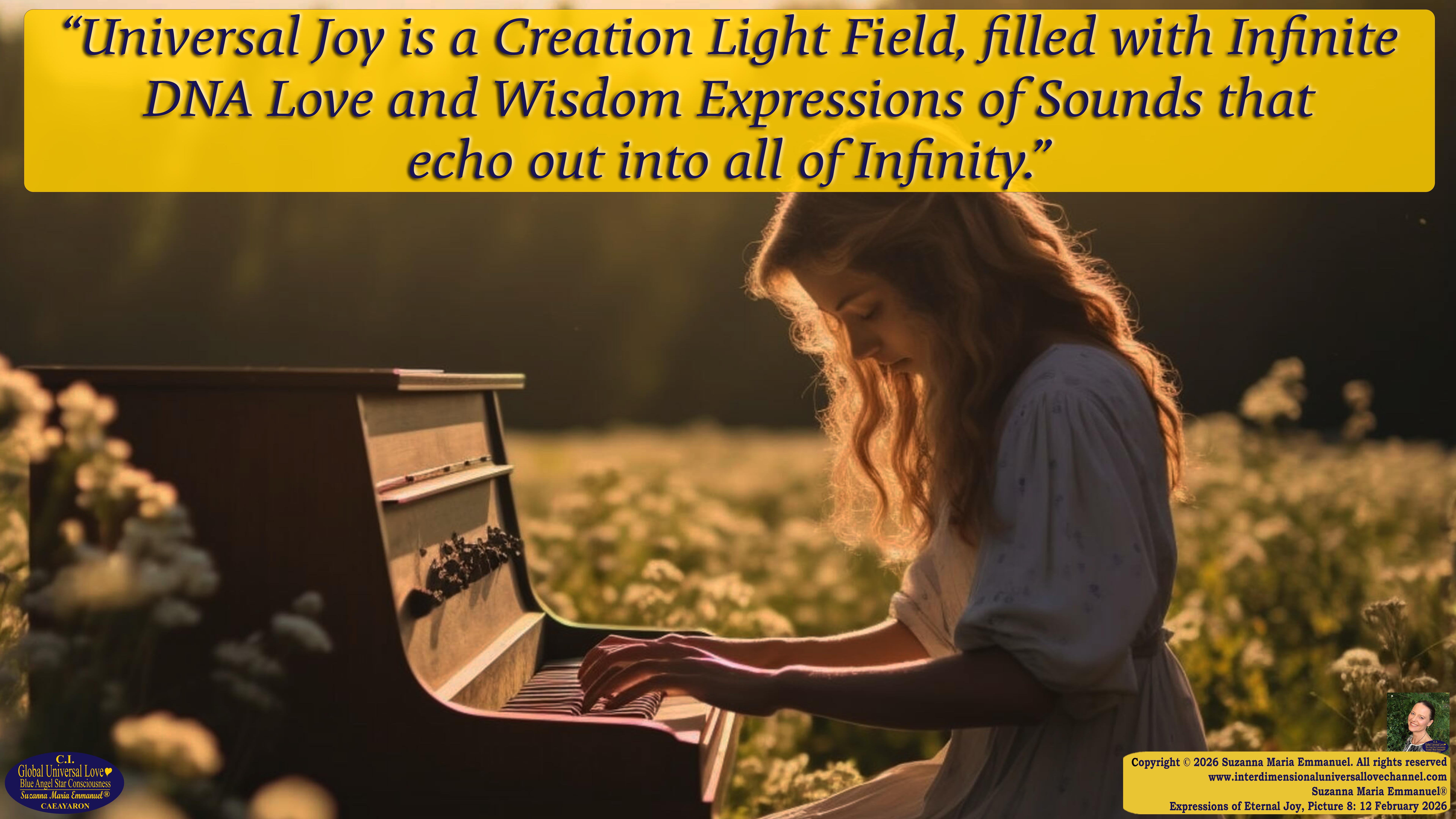 All Suzanna Maria Emmanuel's Interdimensional Star Intellect Transmissions of Universal Love Star Consciousness carry a professional Legal Disclaimer & Indemnity, Trademark, and Copyright Protection.